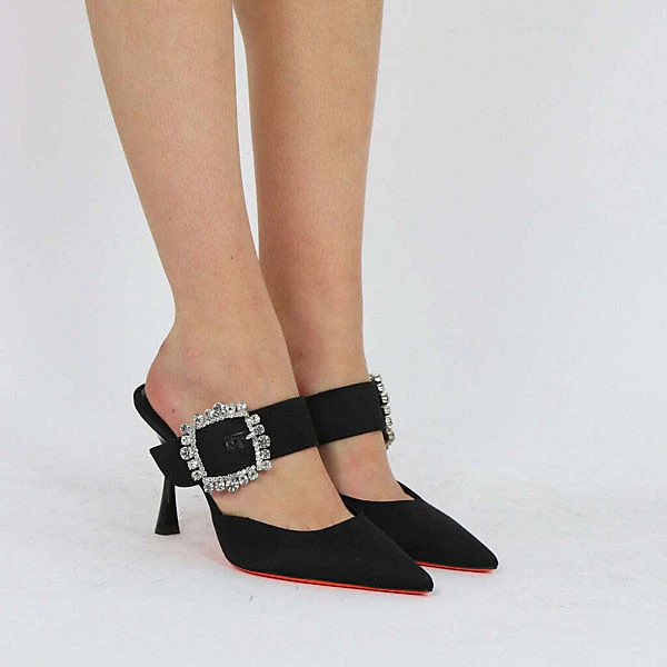 High Heels Damen ; Satin ; Schwarz ; Herbst / Winter ; Sohle: Leder ; ; Innenfutter: Innenfutter aus schwarzem Leder Lederinnensohle