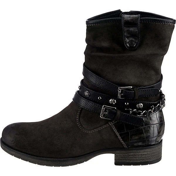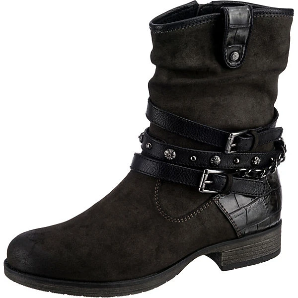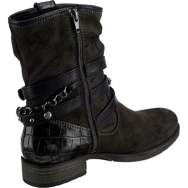 Diese Biker Boots der Marke Jane Klain sorgen für einen unverwechselbaren Akzent. Der Schuh ist mit einem Reißverschluss versehen. Der Blockabsatz kombiniert einen modischen Look mit angenehmem Komfort. Das Obermaterial dieses Paares ist aus Synthetik und erzeugt ein stimmiges Gesamtbild.