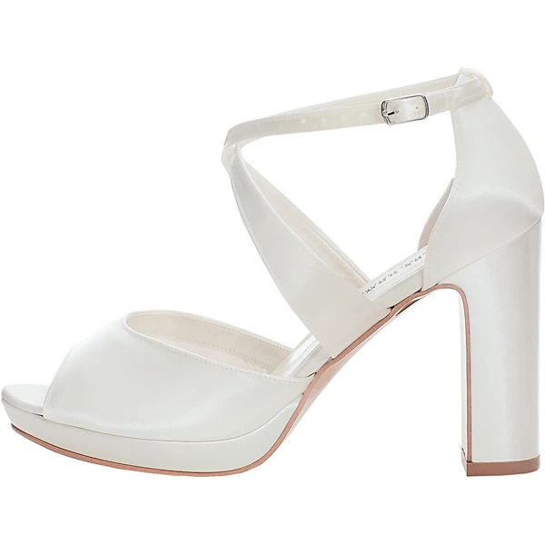 Verleihen Sie Ihrem Braut-Ensemble Glanz mit diesen cremefarbenen Satin-Sandalen mit Peep-Toe Schuhspitze. Mit 10 cm Blockabsatz und rutschfester Sohle bist du mit diesem Schuh immer auf der sicheren Seite.
