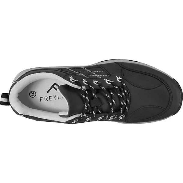 Diese Wanderschuhe von Freyling sind praktische Begleiter für die Fortbewegung auf anspruchsvolleren Untergründen. Ein Vorteil ist auch das anpassungsfähige Polyester-Futter. Durch den Schnürverschluss ist eine individuelle Anpassung kein Problem. Das überzeugend gestaltete Synthetik-Obermaterial unterstützt die Gestaltung dieses Modells.