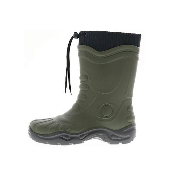 Die Gummistiefel sind am Schaftrand mit einem Tunnelzug mit Stopper ausgestattet. Für ein angenehmes Tragegefühl wurde ein weiches und warmes Kunstfell eingearbeitet. Außerdem ist die flexible Laufsohle profiliert, strukturiert und rutschhemmend. Im Zehen- und Fersenbereich sind die Stiefel verstärkt.