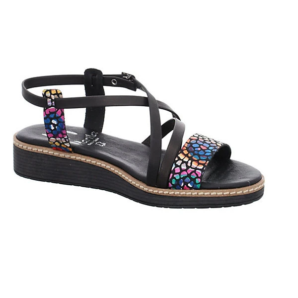 Die Ledersandale von Marila besticht mit ihren kunstvoll arrangierten Riemchen und der attraktiven farbigen Dekoration auf dem Vorderfuß. Für Tragekomfort sorgt die besonders soft gepolsterte Innensohle und die Keilsohle in komfortabler Höhe. Ein schöner Begleiter der sich Dank gelungener Farbkombination vielfältig kombinieren lässt.