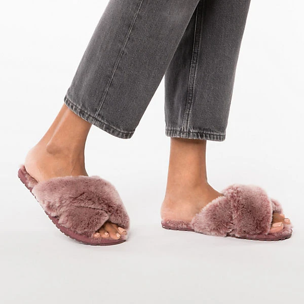 Die EMU Australia Mayberry Frost Hausschuhe verwöhnen deine Füße im Winter durch kuschelweiches allover-Lammfell, welches für besonders hohen Tragekomfort und warme Füße sorgt. Besonderer Hingucker sind die gekreuzten Riemen und die offene Zehenkappe.