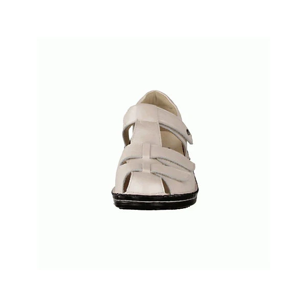 Schöne Sandalen von Finn Comfort aus angenehm weichem und hochertigem Leder. Innen ist der Schuh mit einem cromfrei gegerbtem Leder ausgestattet. Der Schuh verfügt über eine etwas breitere Weite. Der Keilabsatz hat eine Höhe von cirka 3 cm. Die weiche PU-Sohle schont die Gelenke und federt jeden Ihrer Tritte optimal ab. Der Klettverschluss zum einfachen und bequemen an- und ausziehen sorgt für einen guten Halt.Ebenfalls ist eine stufenlose Anpassung an den Fuß möglich. Die Schuhgröße fällt regulär aus.