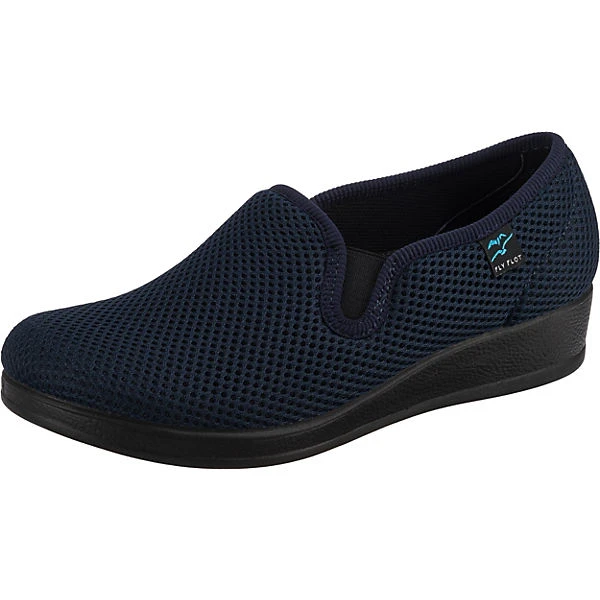 Komfortabel für daheim: die Hausschuhe der Marke FLY FLOT. Der niedrige Keilabsatz sorgt für einen ansprechenden Auftritt. Das Fußbett ist bei Bedarf herausnehmbar. Ein angenehmer Sitz ist dank des elastischen Bandes problemlos möglich. Das Mesh-Material ist besonders atmungsaktiv und hat ein geringes Gewicht.