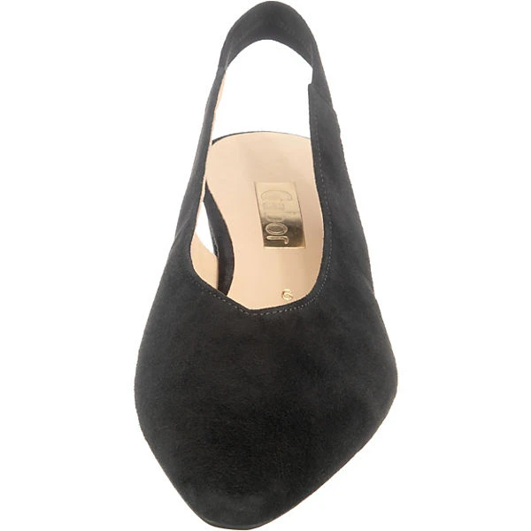 Chicer Damen Sling von Gabor aus einem weichen Veloursleder.Diese Leder hat eine samtartige Oberfläche, ist sehr weiches und atmungsaktiv. Das exzellente Innenleben aus bestem Leder gibt Ihnen ein erholsames Gefühl an langen Tagen. Für gutes Fußklima sorgt die lederbezogene Decksohle. Geschnitten ist die Form für normal breite Füße (Weite F). Der stabile Blockabsatz hat eine Höhe von cirka 3 cm ,für gute Bodenhaftung sorgt die abriebfeste und griffige Gummisohle. Die spitze Form verleiht dem Schuh einen modischen, aktuellen Look. Der Schuh sieht dadurch schmaler und gleichzeitig elegant aus. Die Schuhgröße fällt regulär aus. GABOR ist führender Hersteller qualitativ hochwertiger, modischer Damenschuhe. Neben modischer Aktualität sind Passform und Verarbeitungsqualität die wesentlichen Merkmale des GABOR Markenschuhs.Die langjährige Erfahrung ist die Grundlage dessen, was das Unternehmen als „Gabor-Qualität“ bezeichnet. Nur höchste Ansprüche an jedes Paar Schuhe haben Gabor zur Traditionsmarke werden lassen.
