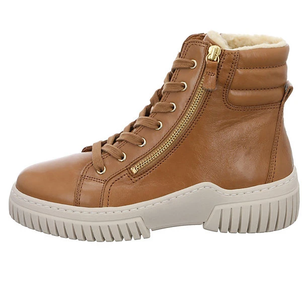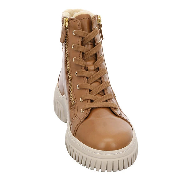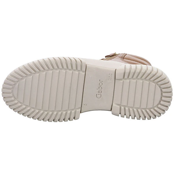 Superbequemer Schnürboot aus dem Hause Gabor mit warmem Innenfutter. Das weiche Oberleder in der Farbe Chino macht diesen Schuh besonders vielseitig kombinierbar. Dank der herausnehmbaren Decksohle ist das Tragen eines individuellen orthopädischen Fußbettes möglich. Die flexible Profillaufsohle ist nicht nur optisch ein Eyecatcher, sie ermöglicht auch ein angenehmes Laufgefühl den ganzen Tag über. Dieser Boots wird schnell zum Liebling der Herbstsaison.