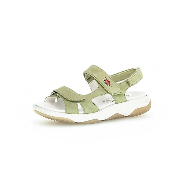 Schöne sportlich elegante Damen-Sandale von Gabor aus der RollingSoft-Serie aus einem feinem Velourleder. Der Artikel verfügt über Klettverschlüsse, die eine perfekte Anpassung an den Fuß ermöglicht. Innen ist der Artikel mit chromfrei gegerbtem Leder und einem Wechselfußbett ausgestattet. – also auch perfekt für Einlagenträger geeignet. Der Schuh verfügt über die Weite G und bietet somit dem Fuß viel Platz und Komfort. Die EVA-Laufsohle besticht durch Leichtgigkeit und durch sehr gute Dämpfung und Abrollfä