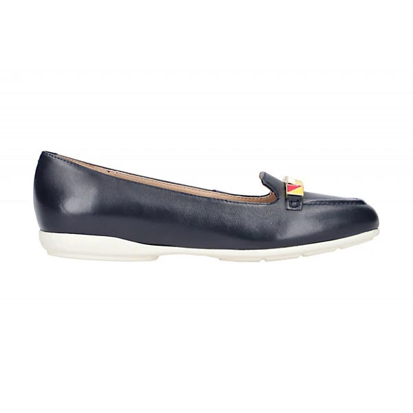 Hersteller: Geox Hersteller Art-Nr.: D027NB 00085 C4002 Modellname: ANNYTAH – donna annytah b Machart: Ballerinas – Damen Halbschuhe – Slipper Farbe: dunkelblau + Sohle in weiß (navy) Obermaterial: Echtleder – Glattleder (Nappa) Innenfutter: Synthetik, Kunstleder Innensohle: Synthetik Fußbett, Kunstleder Wechselfußbett: Ja – herausnehmbare Innensohle Laufsohle: Gummisohle, wasserdicht + atmungsaktiv, Geox ATMET Absatzart: flach – kein Absatz Schuhform: rund Größenhinweis: fällt normal aus Weitenangabe: G – normal Weite