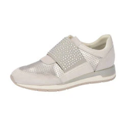 Hersteller: Geox Hersteller Art-Nr.: D82N1A 022NF C0626 Modellname: SHAHIRA – donna shahira a Machart: Damenschuhe – sportliche Slipper – Halbschuhe Farbe: weiß + hellgrau + silber metallic (off white / silver) Obermaterial: Glattleder + Velourleder Mix (Suede / Peral Syn) Innenfutter: Textil – weich gepolstert Innensohle: Textil – atmungsaktiv und antibakteriell Wechselfußbett: Ja – herausnehmbare Innensohle Laufsohle: Gummisohle, wasserdicht + atmungsaktiv, Geox ATMET Verschluss: Gummizug – ohne Verstellmöglichkeit Absatzart: flach – kein Absatz Schuhform: rund Größenhinweis: fällt normal aus Weitenangabe: G – normal Weite