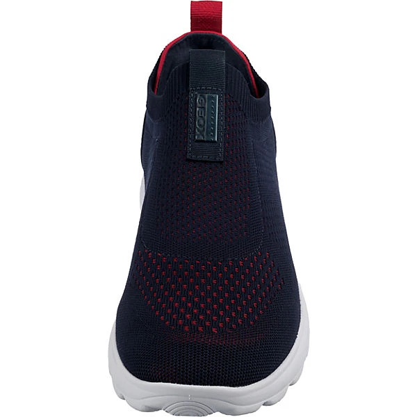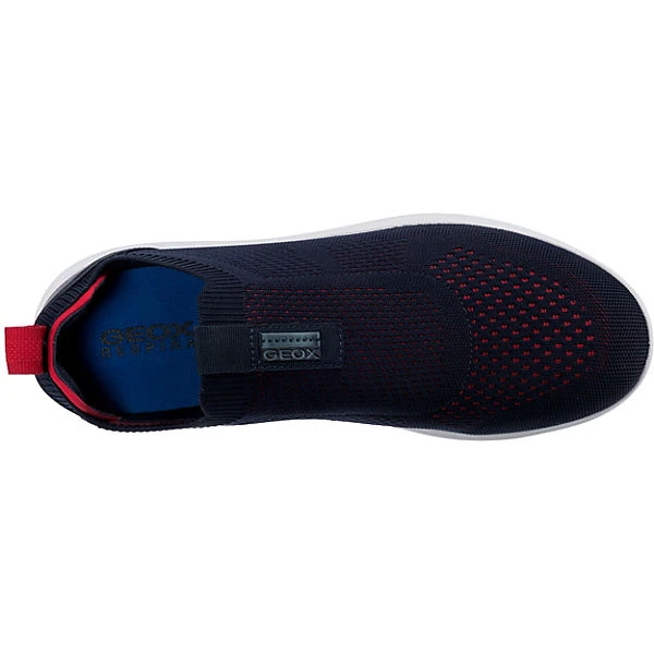 Praktisch für jeden Tag: Die ansprechenden Slipper von der Marke GEOX. Das Schuhpaar kommt ohne jeglichen Verschluss aus, sodass ganz bequem hineingeschlüpft werden kann. Die Decksohle ist bei Bedarf einfach herauszunehmen. Die textile Oberfläche ist anschmiegsam und hat ein geringes Gewicht. Für ein ideales Fußklima wird durch die Mikroperforationen in der Sohle gesorgt.