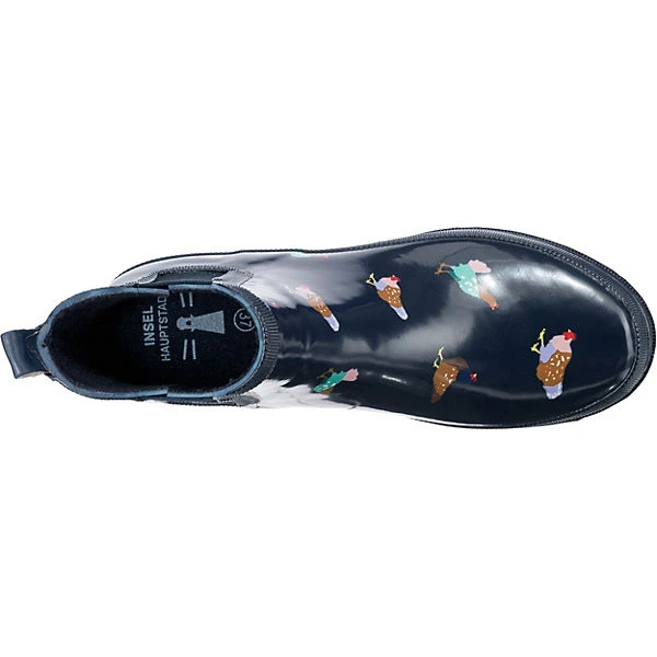 An regnerischen Tagen sind die Gummistiefel von Inselhauptstadt hervorragende Begleiter. Ein guter Sitz am Fuß ist dank des elastischen Bandes möglich. Der Blockabsatz verbindet einen femininen Look mit angenehmem Tragekomfort. Ein Vorteil ist auch das anpassungsfähige Polyester-Futter.
