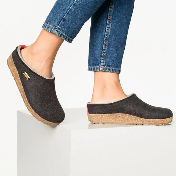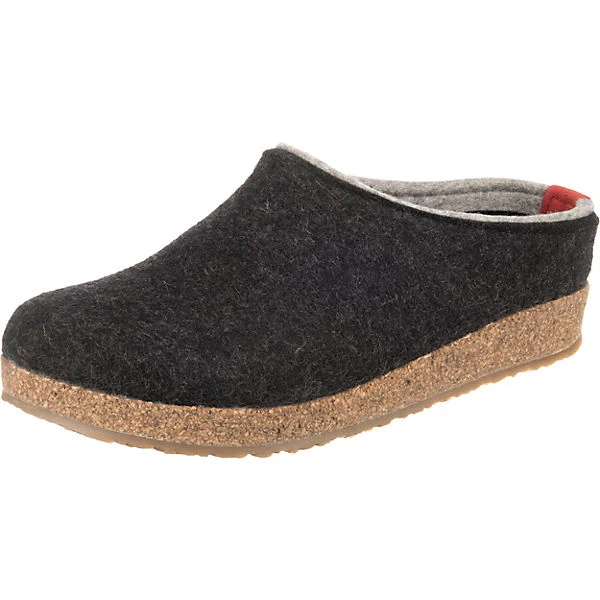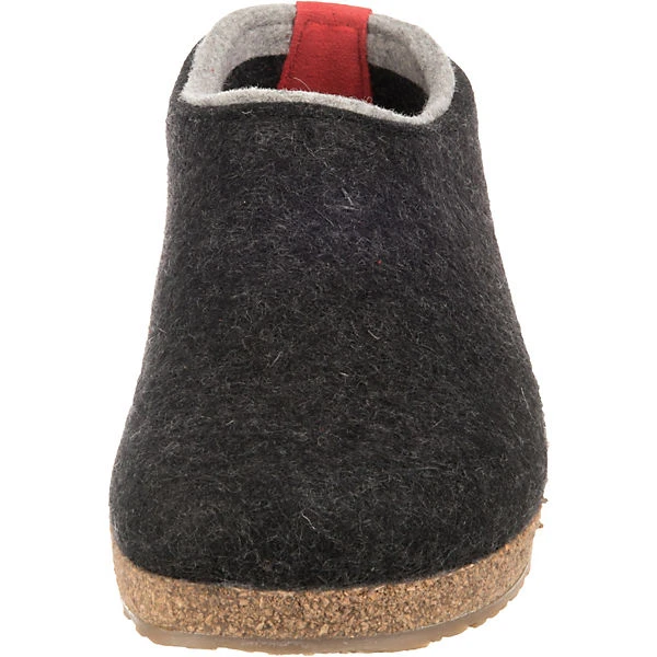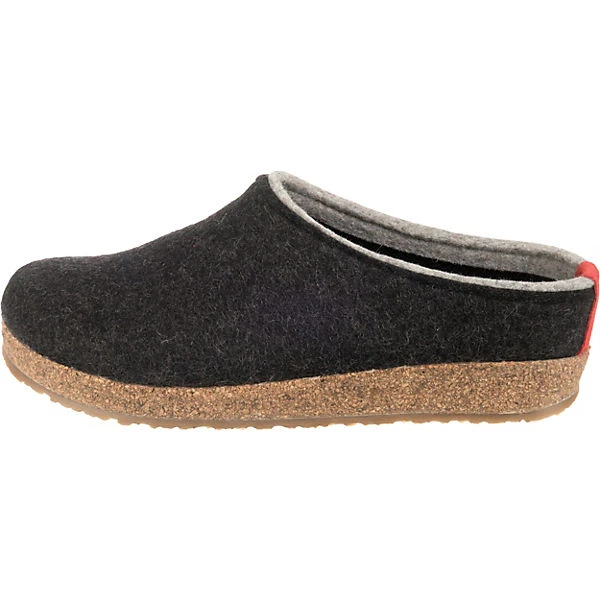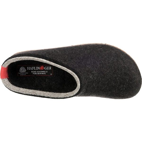 Haflinger Herren Hausschuhe/ Pantoffeln Grizzly Gris Grau Filz mit rotem Kontrast-Element an der Ferse, Labelplate und hochgezogenem Einstieg für besseren Halt