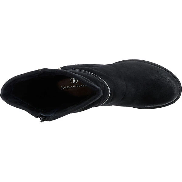 Ein ganz besonderer Blickfang sind die Biker Boots der Marke JOLANA & FENENA. Das Obermaterial zeichnet sich durch das feine Leder aus. Der bequeme Blockabsatz sorgt für einen modischen Look. Aufgrund des warmen Futters ist das Paar sehr gut für kalte Jahreszeiten geeignet. Der Schuh schließt per Reißverschluss.