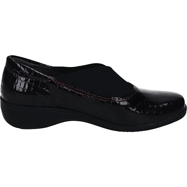 Schuh-Verschlussart: Schlupfschuh, Schuhweite: Weite G, Absatzhöhe: 3,5 cm, Absatzform: Keilabsatz, Obermaterial: Krokolack, Innenmaterial: Synthetik-Futter, Schuhsohlen-Material: PU-Sohle, Decksohle: herausnehmbare Lederdecksohle, Farbe: bordeaux