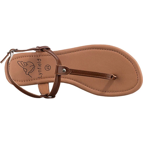 Diese stilechten T-Steg-Sandalen der Marke Lynfield vervollständigen unterschiedlichste Outfits. Die Schnalle ermöglicht eine bestmögliche Weitenregulierung. Die Oberfläche des Paares besteht aus strapazierfähigem Synthetik und sorgt für ein stimmiges Gesamtbild.