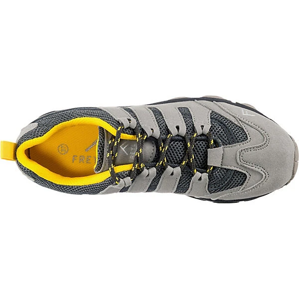 Diese Wanderschuhe von Freyling beweisen sich als widerstandsfähige Begleiter für Aktivitäten auf anspruchsvolleren Untergründen. Der Schnürverschluss sorgt für eine bestmögliche Anpassung an den Fuß und einen festen Halt. Die Oberfläche des Modells besteht aus Synthetik und ergibt ein stimmiges Gesamtbild.