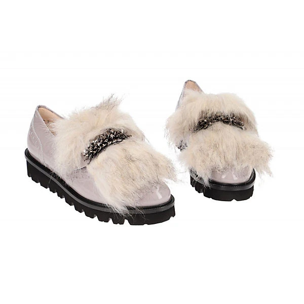 Hersteller: Peter Kaiser Hersteller Art-Nr.: 56279/519 Modellname: ALVA 30 Machart: Damenschuhe – Slipper – Halbschuhe Farbe: grau (ivory) Obermaterial: Echtleder – Lack Leder (Kalbleder / Peluche) Innenfutter: Echtleder – dünnes Leder Kaltfutter Innensohle: Echtleder – Fußbett Wechselfußbett: nicht herausnehmbare Innensohle Laufsohle: robuste Profil Gummisohle, EVA-Sohle Verschluss: Gummizug – ohne Verstellmöglichkeit Absatzart: Keilabsatz / Wedge, 1cm Keil + 2cm Plateau Absatzhöhe: flach Schuhform: rund Größenhinweis: fällt normal aus Weitenangabe: F – normal Weite