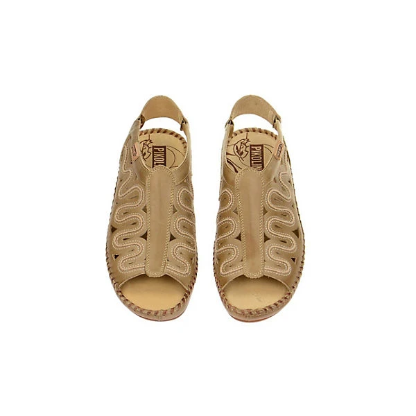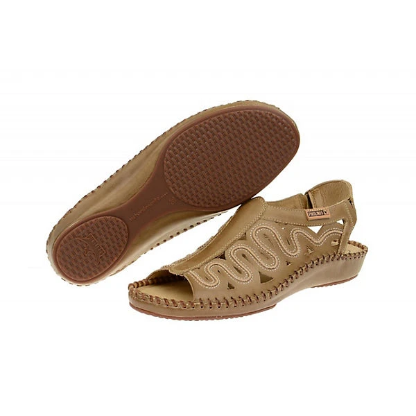 Hersteller: Pikolinos Hersteller Art-Nr.: 655-9467 castor Modellname: P.VALLARTA Machart: Damen Sandale – Sandaletten Farbe: beige + braun (castor cuero) Obermaterial: Echtleder – Glattleder (Kalbleder) Innenfutter: Echtleder – weich gepolstert Innensohle: Echtleder – Fußbett Wechselfußbett: nicht herausnehmbare Innensohle Laufsohle: Gummisohle Absatzart: Keilabsatz / Wedge, ca. 2,5cm Absatzhöhe: flach Schuhform: rund Größenhinweis: fällt normal aus Weitenangabe: G – normal Weite