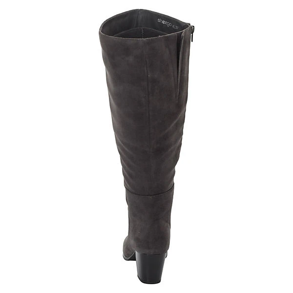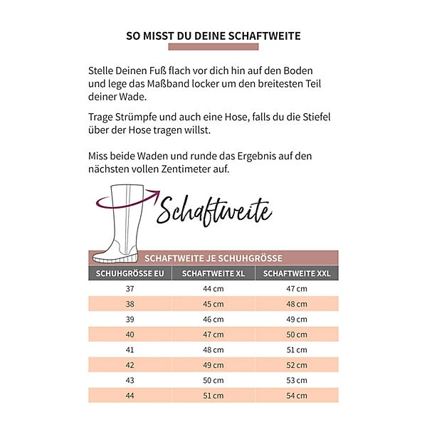 Stiefel mit abgerundeter Spitze und Reißverschluss von sheego. Dieser schicke Style überzeugt durch die gute Passform, die durch den kleinen Stretch-Einsatz am Schaft ermöglicht wird. Der feminine Absatz ist ca. 6 cm hoch. Bei der Fußweite F handelt es sich um eine Standard Weite für normale Füße. Das Velours-Lederimitat ist angenehm weich. Die Schaftweite XL beträgt ca. 44-51 cm, die Schaftweite XXL ca. 47-54 cm und die Schafthöhe ca. 40 cm.Unser Tipp: Bitte beachte, dass die Schaftweite bei jedem Stiefelmodell unterschiedlich ausfallen kann. Miss daher vor der Bestellung deine Wadenweite nach – eine Anleitung dazu findest du in den Produktbildern.