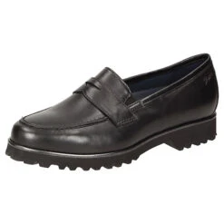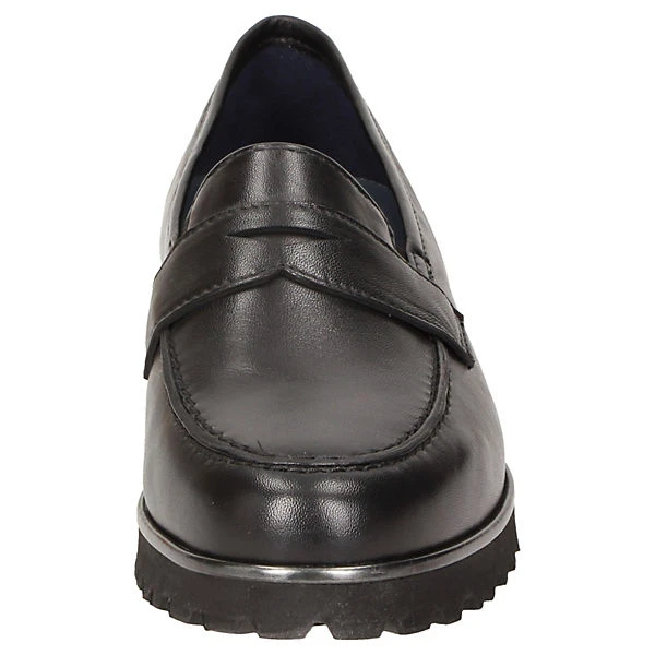 Damenslipper in H-Weite im College-Look mit Pennyloafer-Garnitur. Gefertigt aus sehr weichem Lammnappa-Leder und gefüttert mit Kalbleder und einem Stretch-Textilfutter im Vorfußbereich. Für Hallux-Valgus-Füße geeignet! Herausnehmbare, kalblederbezogene Decksohle mit weicher Dämpfung – auch geeignet zum Austausch mit der eigenen Einlage. Profilierte, herbstlich anmutende Leichtgummisohle mit markantem Lederrahmen.
