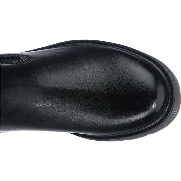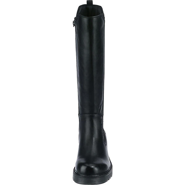 Unterstreichen unterschiedliche Outfits: Diese modisch gestalteten Weitschaftstiefel von TOM TAILOR. Ein Vorteil ist zudem das anpassungsfähige Polyester-Futter. Der bequeme Blockabsatz bietet einen ansprechenden Auftritt. Die Schuhe schließen per Reißverschluss.