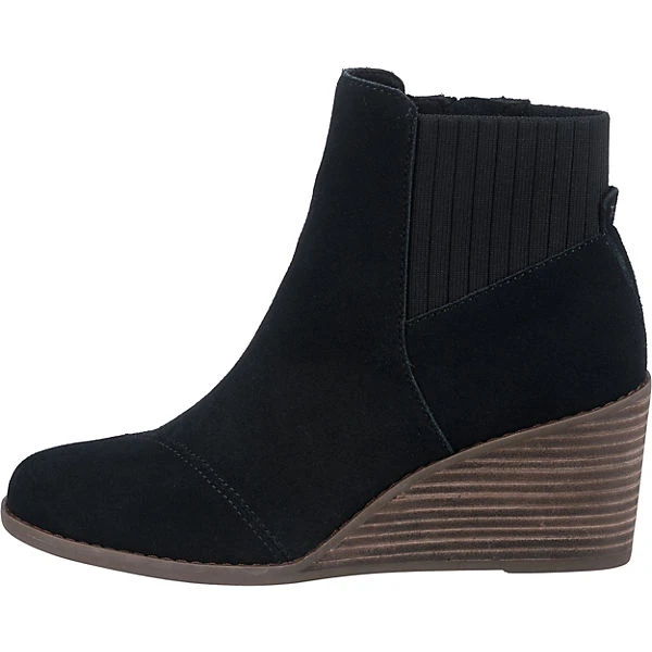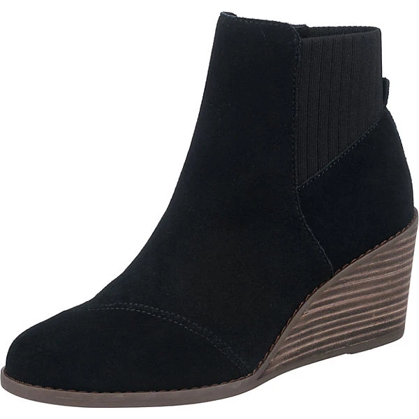 Die trendig gestalteten Chelsea Boots aus dem Hause TOMS ergänzen verschiedenste Outfits. Das Textil-Futter bestehend aus Polyester passt sich gut an die Füße an und ist gleichzeitig sehr anschmiegsam. Ein bequemer Sitz am Fuß ist dank des elastischen Bandes ein Leichtes. Der niedrige Keilabsatz unterstreicht den ansprechenden Look. Das wasserabweisende Obermaterial der Schuhe sorgt für einen hohen Tragekomfort auch bei feuchtem Wetter. Das Obermaterial zeichnet sich durch das feine Leder aus.