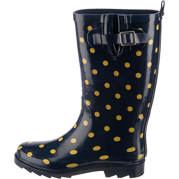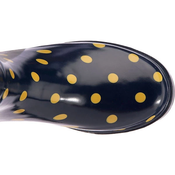 Für regnerische Tage: Die Gummistiefel von der Marke Freyling halten die Füße stets trocken. Das textile Futter besteht aus Polyester und passt sich gut an den Fuß an. Der Blockabsatz kombiniert einen stilsicheren Look mit hohem Tragekomfort. Das Modell kommt ohne jeglichen Verschluss aus, sodass ganz einfach hineingeschlüpft werden kann.