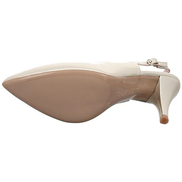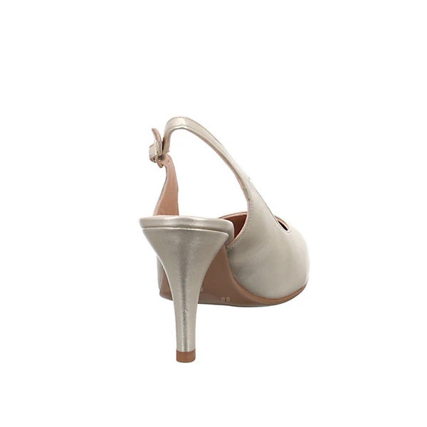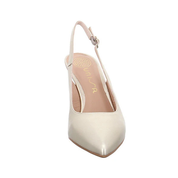 Hochwertige Leder in schimmernder Goldoptik und ein passend lederbezogener Absatz machen die Slingpumps von Unisa zu einem echten Blickfang. Eine rutschhemmende Sohle und eine soft gepolsterte Innensohle versprechen besten Tragekomfort auch an langen Abenden. Ein schöner Begleiter für besondere Anlässe.